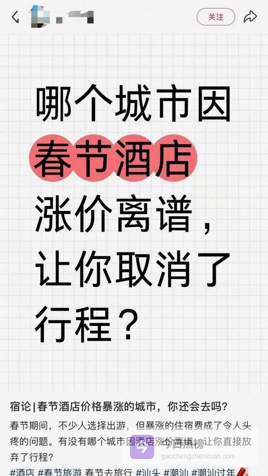 今年春节汕头酒店价格集体冲上高位,4221元到6719元一晚频现,预订量同比暴涨186%,不少返乡与旅游计划被迫改道或取消,监管回应“市场调节、明码标价不违法”
