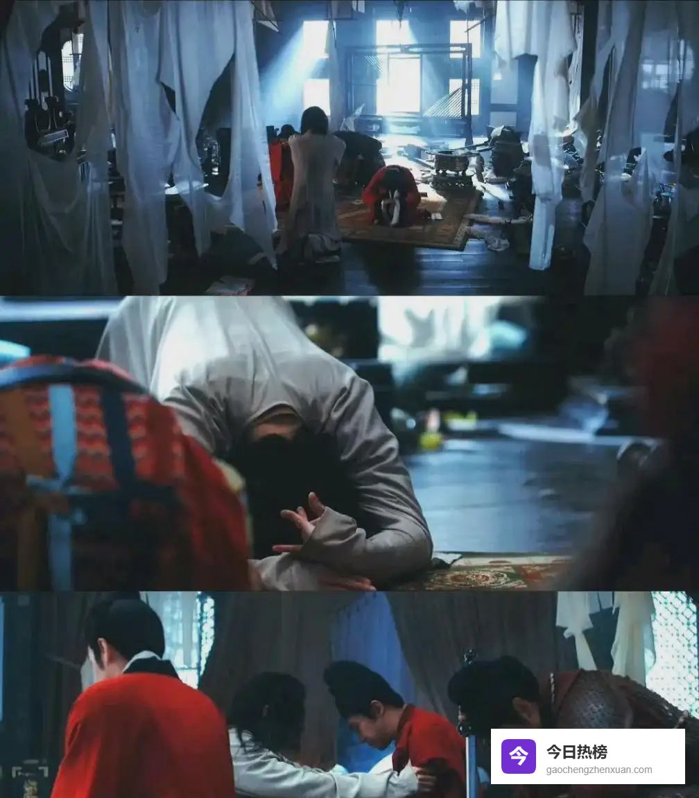 第6集的火烧皇宫戏份,他演绎出了精神溃败期的癫狂状态。 眼看着江山覆灭,石重贵嘶吼着,肢体颤抖如风中残烛,声音嘶哑,眼神绝望而疯狂,将从云端跌落泥潭的崩溃感诠释得让人揪心。
