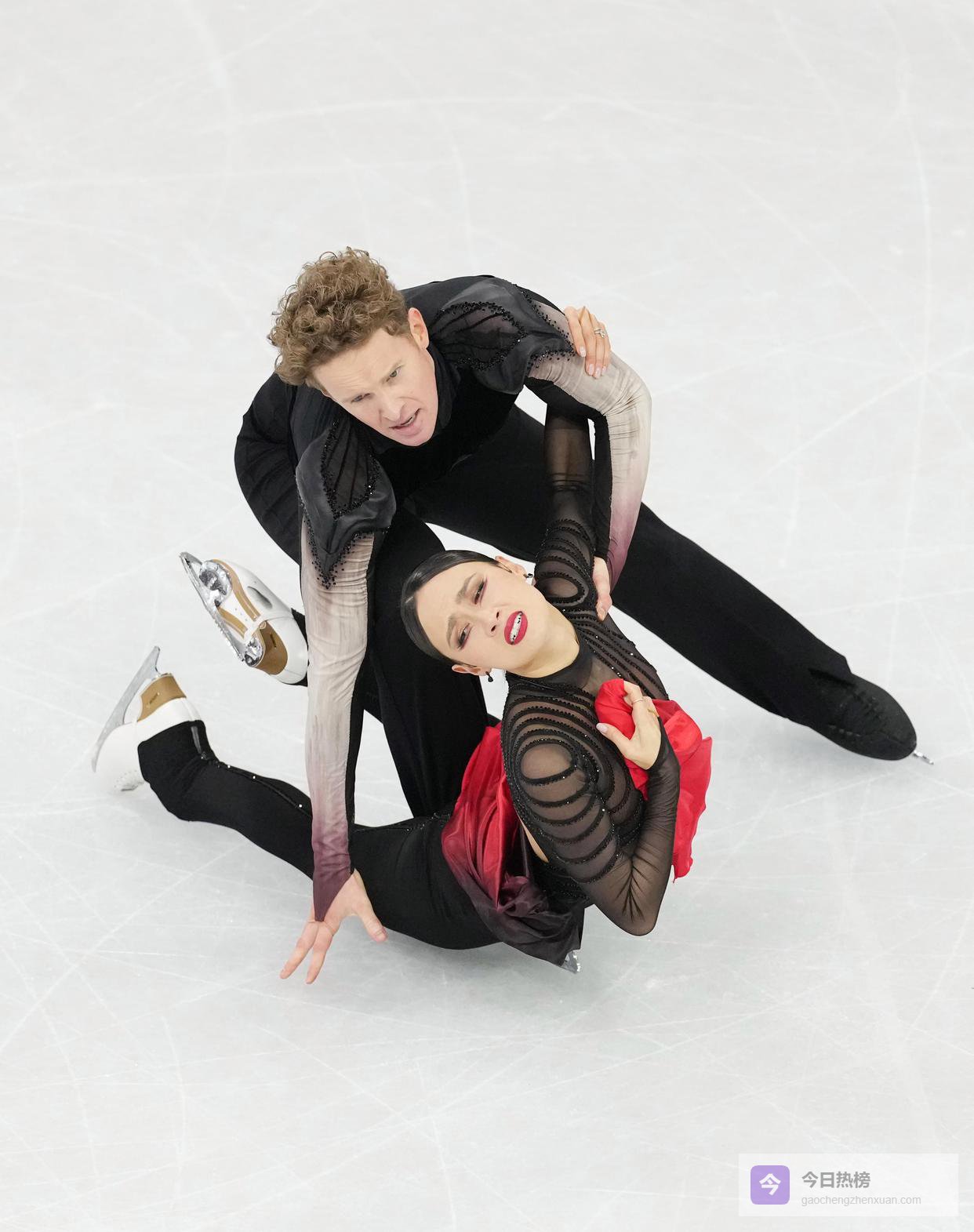 ↑2月11日,英国组合贝克(左)/ 埃尔南德斯在自由舞比赛中。新华社记者 李明 摄