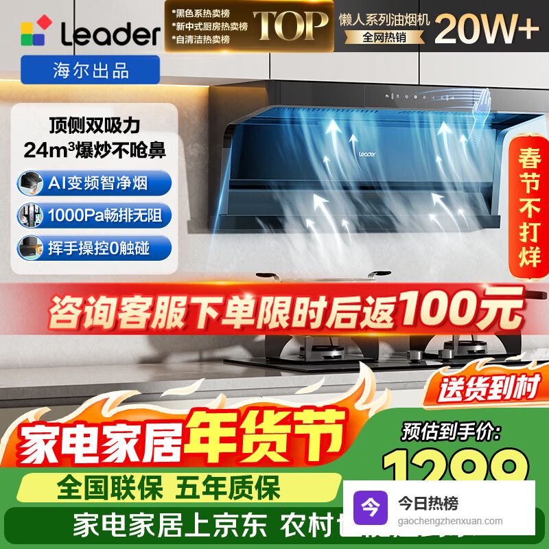 海尔(Haier)统帅出品自营懒人小黑翼92Dpro 抽吸排油烟机 上门安装 顶侧双吸24m³大吸力1000Pa变频可搭燃气灶¥