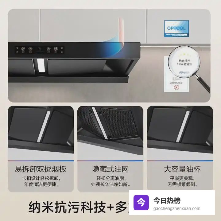 ③易清洁设计,可拆卸油网和导油板,搭配大容量油杯,减少清理频率,日常维护更轻松,还有自清洁技术,能自动甩离内部风轮油污。