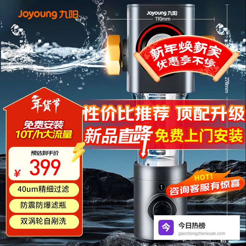 【京东自营】九阳前置过滤器40μm反冲洗压力表监控全屋家用净水器自动清洗10T大通量RQ361¥