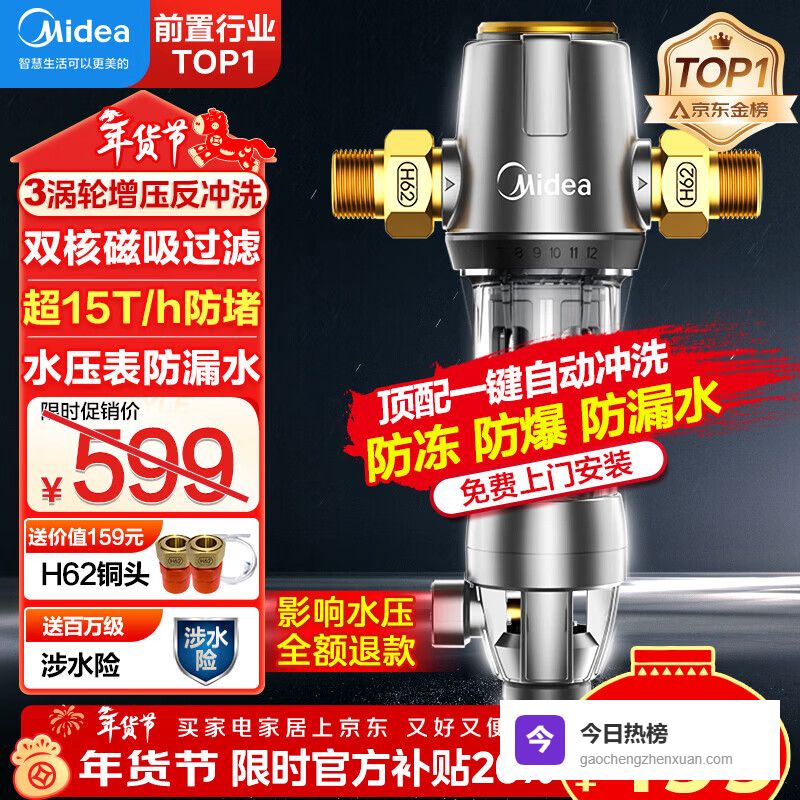 N0.3:美的前置过滤器QZBW20S-12T 反冲洗净水器