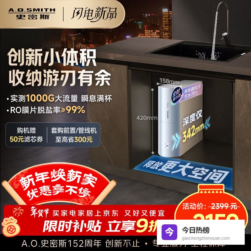 【京东自营】史密斯佳尼特净水器蓝鲸2.0家用净水器厨房专用台下用净水机直饮一体机小体积5年RO膜CR¥
