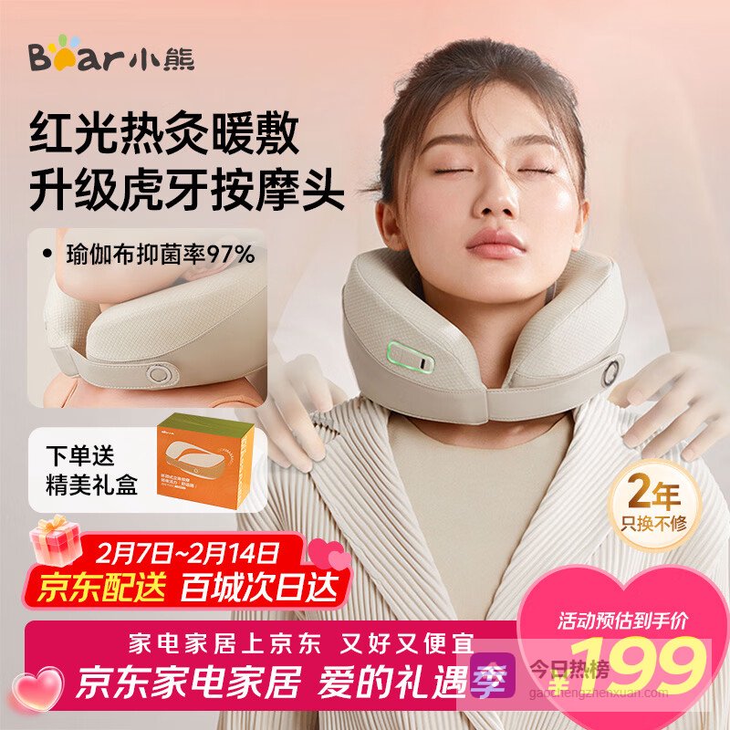 小熊(Bear)颈椎按摩器肩颈按摩仪颈部按摩枕U型枕揉捏脖子肩部热敷便携 生日送女生长辈新年年货情人节礼物¥