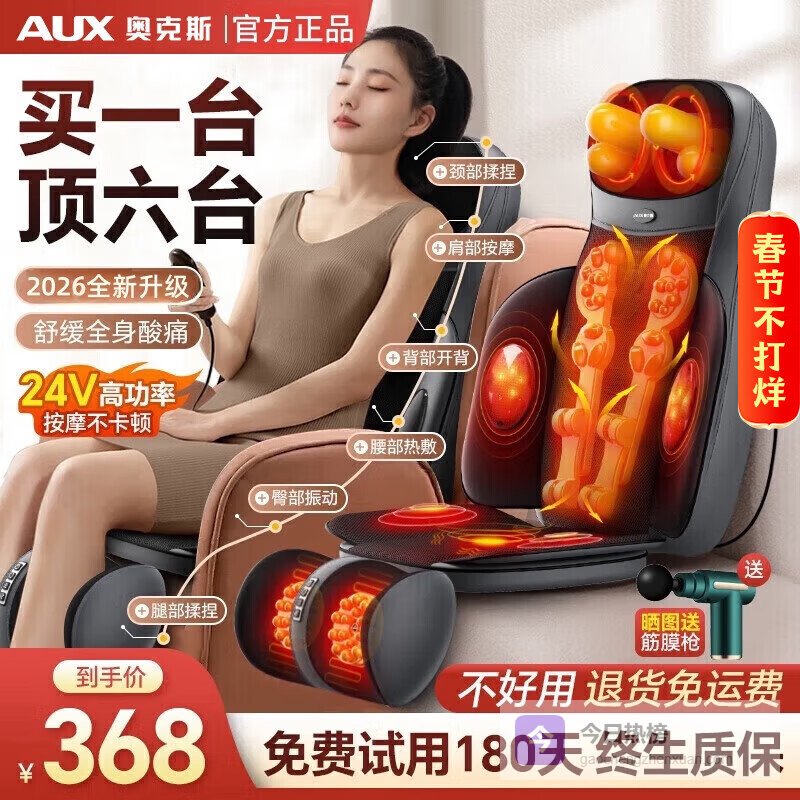 五、奥克斯全身按摩:这款按摩靠垫能帮你按摩颈椎、肩膀、腰背、背部,基本上全身都能放松到,用起来挺舒服的,缓解一天的疲劳还不错,特别适合长时间坐办公室或者看电视时用。