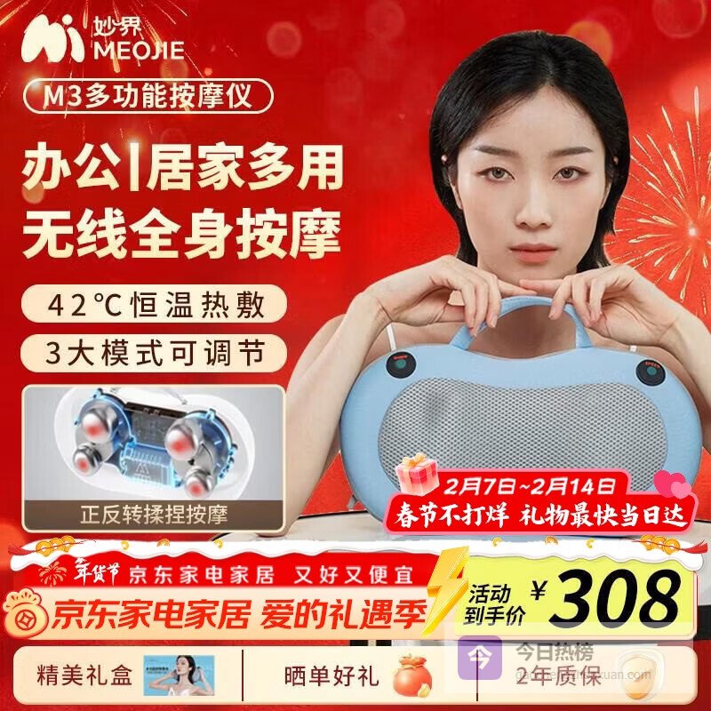 八、京东京造无线便携:这款京东京造按摩器支持无线使用,不用束缚在插座边,出门在职场或在家放松都挺方便。内置锂电池一次充满可以多次使用,绝对比有线的灵活多了,随时随地都能按得舒服。