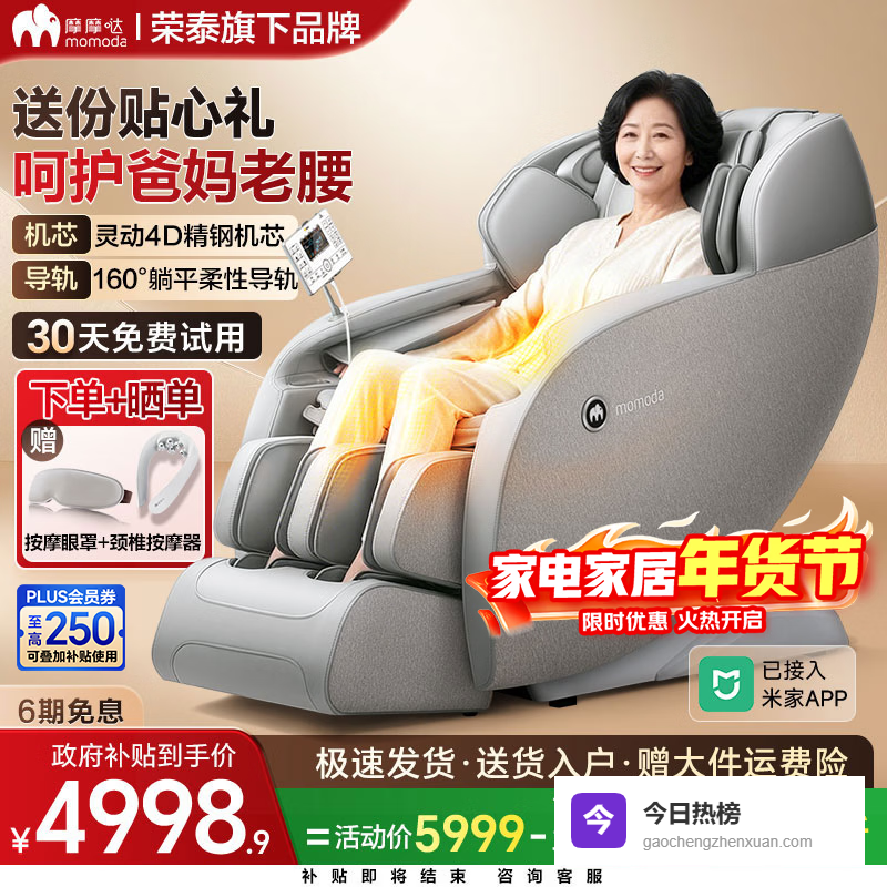 在快节奏的生活里,按摩椅成了不少人放松身心的“神器”。可面对市面上琳琅满目的品牌,海尔和摩摩哒这两个热门选手,究竟哪个更舒适呢?这成了很多人在选购时纠结的问题。其实,舒适感并非单一因素决定,机芯技术、导轨设计、气囊分布等都会影响使用体验。接下来,就从这些关键维度对比分析,看看谁才是真正的“舒适担当”。