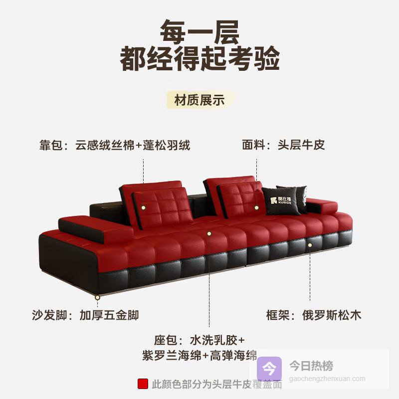 2️⃣S级优质牛皮:严格挑选头层牛皮,确保沙发在使用过程中保持卓越的耐用性与舒适度,经过精细处理,展现出一流的质感,让人倍感安心。无论是家人聚会还是朋友小聚,都能轻松应对。