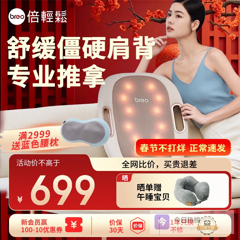 5、倍轻松(breo)腰部按摩器颈椎热敷按摩仪送爸妈长辈睡