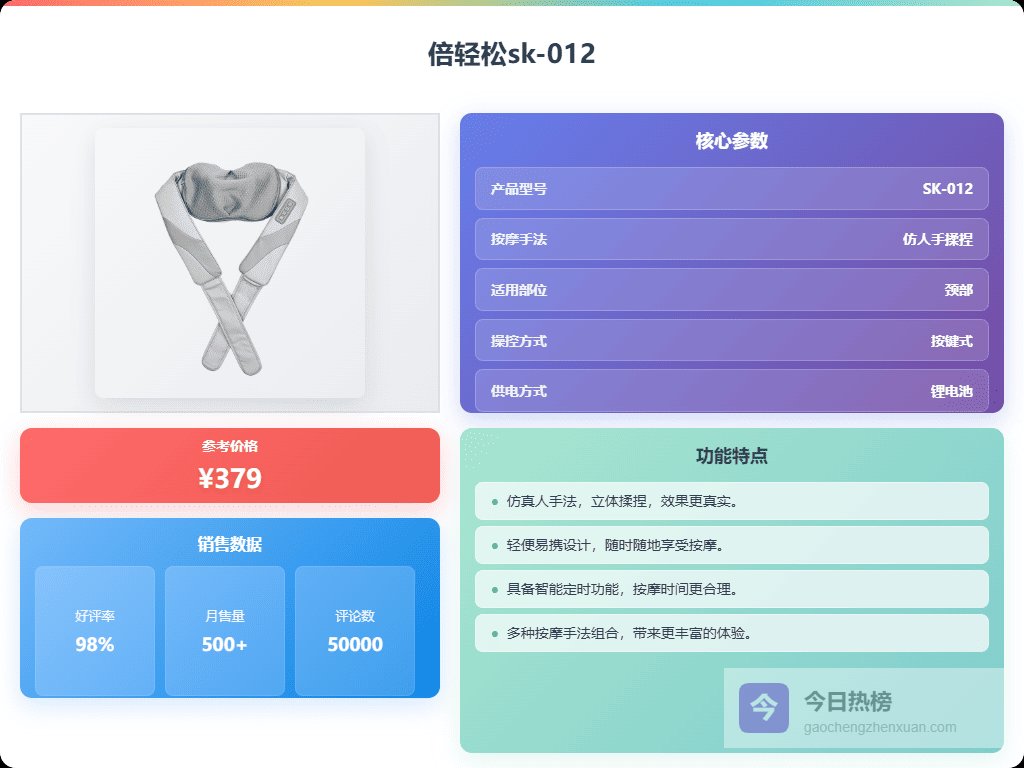 写在最后:倍轻松腰部按摩仪的款式和功能各有侧重,大家可以根据自己的需求和预算,选择最适合自己的那一款。希望大家都能找到一款让自己腰部舒适放松的好帮手!