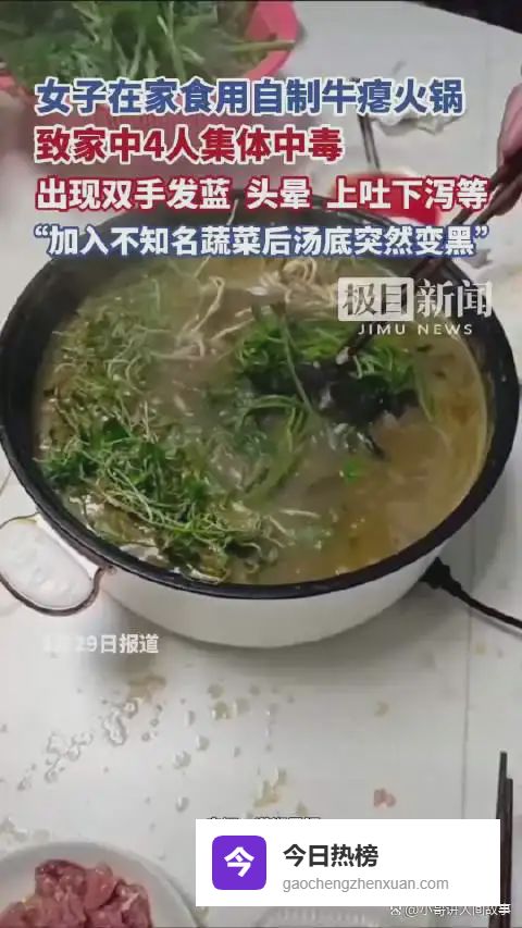 近日,四川成都一则“吃火锅中毒”的消息冲上热搜,堪称猎奇尝鲜的惨痛教训:张女士一家4口在家自制牛瘪火锅后,集体出现双手变蓝、头晕呕吐的诡异症状,紧急送医后3人仍需留院监测,而这场悲剧的根源,全是自制过程中的多重疏忽。#女子吃自制牛瘪火锅中毒双手变蓝