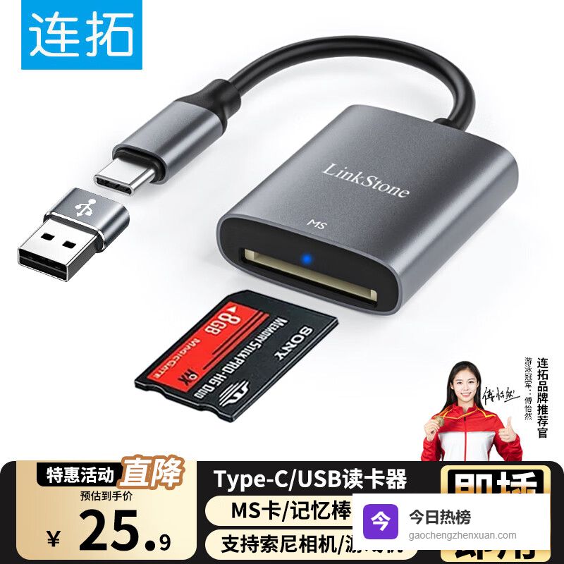 连拓USB/Type-C高速MS读卡器苹果17/16华为手机OTG读卡器索尼储存卡sony相机摄像机记忆棒PSX游戏机PSP¥