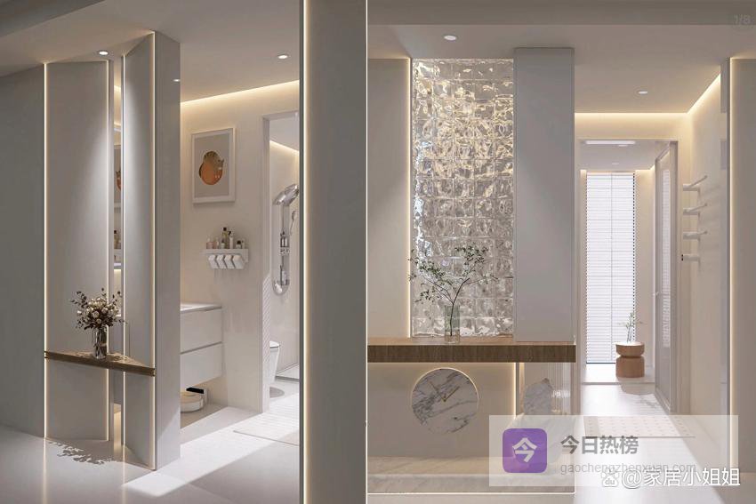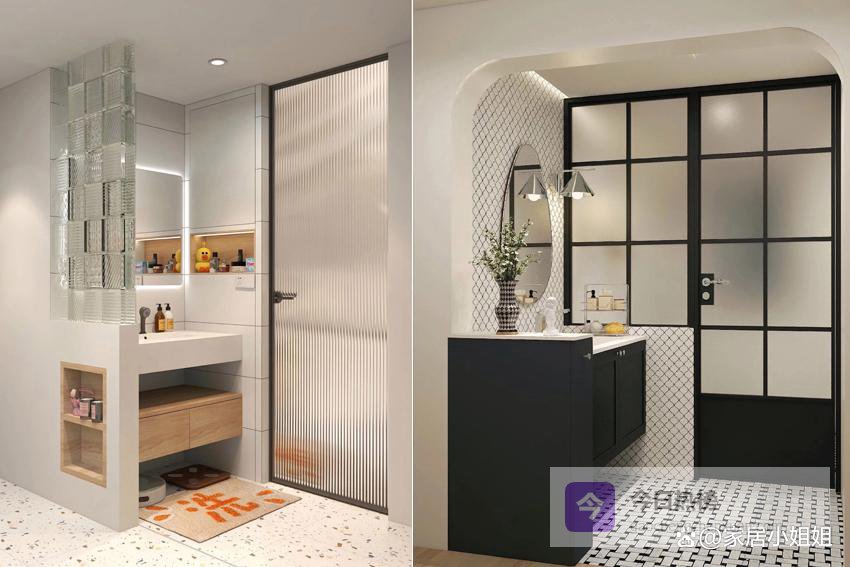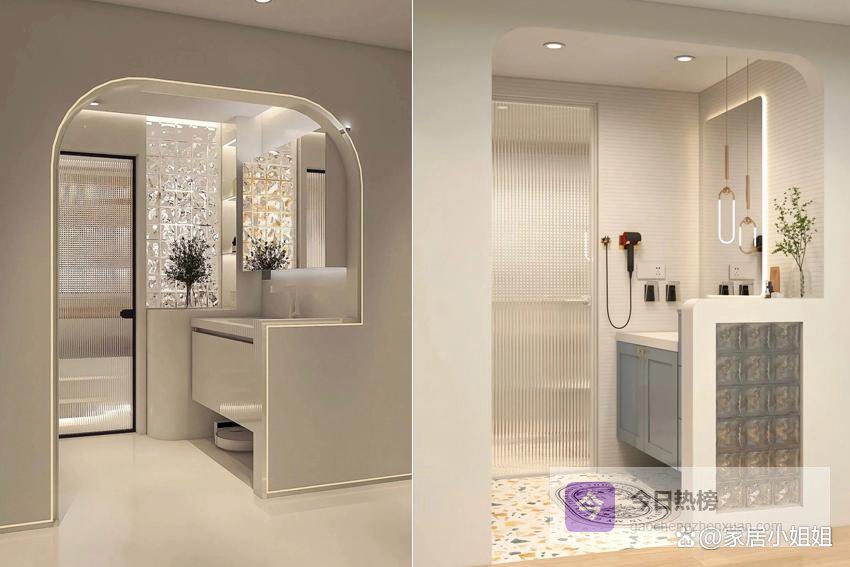 双卫家庭更适合尝试。注意隐私与整体搭配。选用轻盈、通透的材质,如玻璃砖等。
