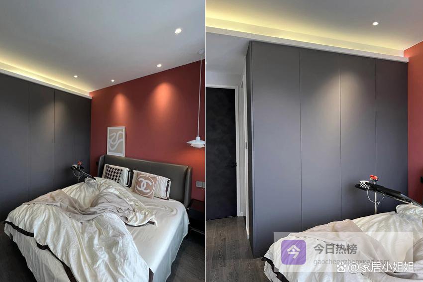 但现实中,许多设计忽略空间比例和床的高度,生硬拼接两个悬浮柜,不仅突兀,还可能因承重问题出现下垂。再加上价格并不低,渐渐被贴上“翻车”标签。
