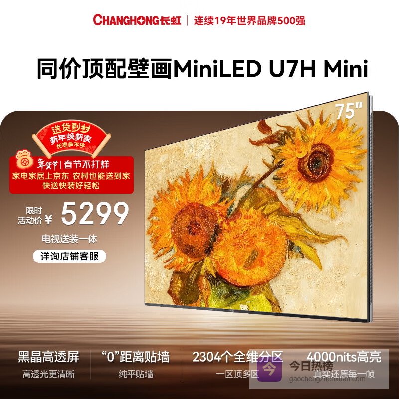 【京东自营】长虹高端款长虹电视75U7HMini75英寸【包安装】壁画电视2304分区开机无广告平板¥
