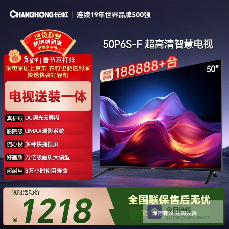 推荐理由:50英寸大屏、HDR技术、一键看直播