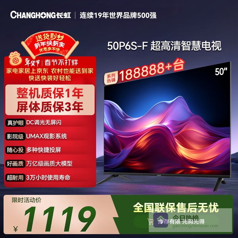 第二款:长虹50英寸HDR平板电视50P6S-F