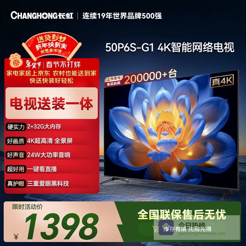 【京东自营】长虹经济款长虹电视50P6S-G150英寸【包安装】智能4KHDR手机投屏一键直播智能电¥