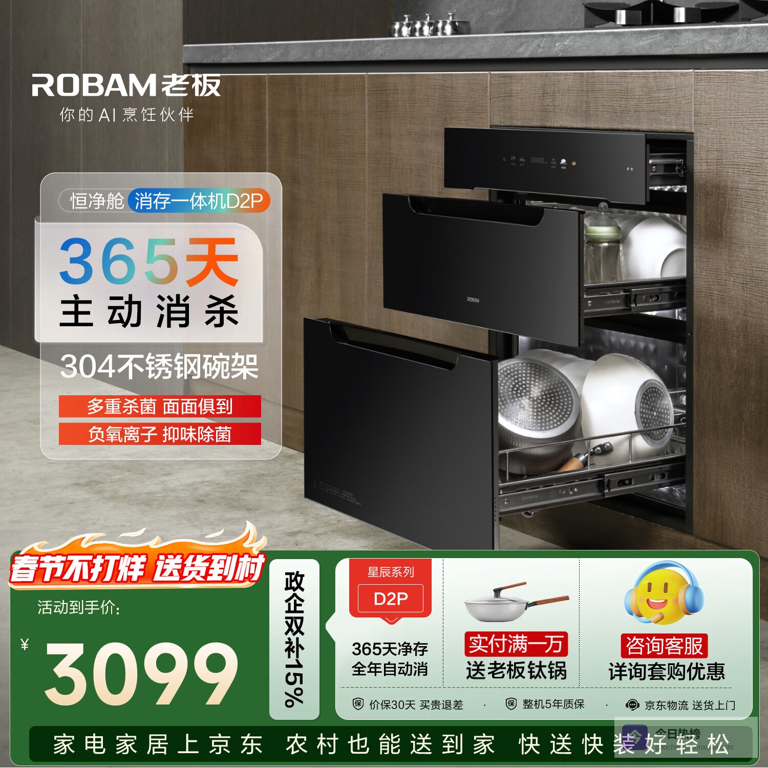 【京东自营】老板D2P消毒柜嵌入式150L餐具全不锈钢母婴家用消毒碗柜收纳餐具柜小型烘干消毒一体橱柜¥