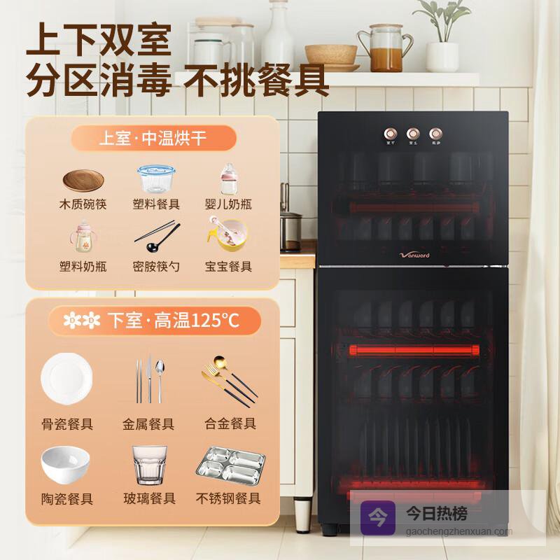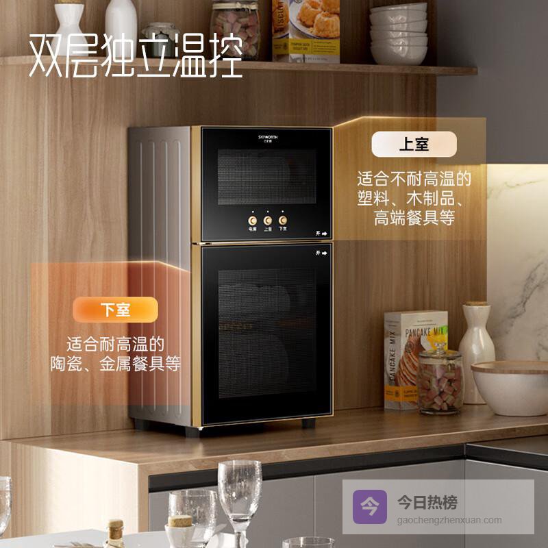 为了保证不同材质餐具的安全,在功能设计上采用了上下双室独立控制,上室提供中温烘干,下室进行高温消毒,真正实现了保护和消毒的完美结合。在日常使用中,无需担心不同材质间的相互影响,确保每一件餐具都能获得最优质的呵护。
