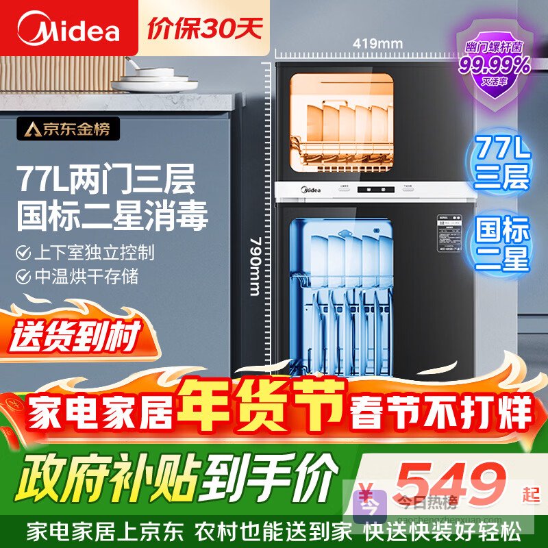 推荐入手:美的消毒柜家用77L三层80R05