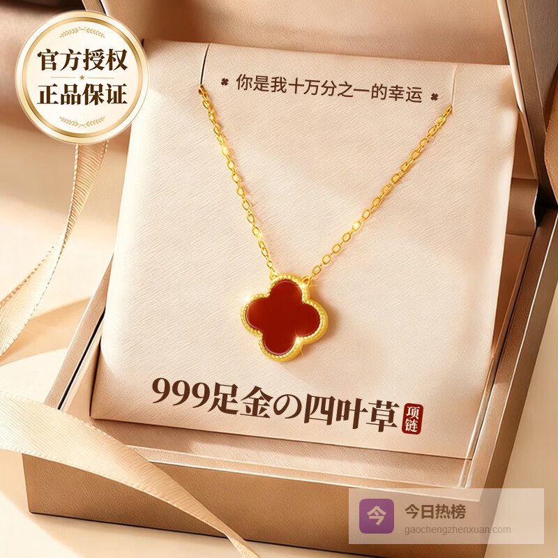 【京东自营】礼意久久玛瑙999黄金四叶草项链女款生日礼物女生38女神节礼物妇女节老婆¥