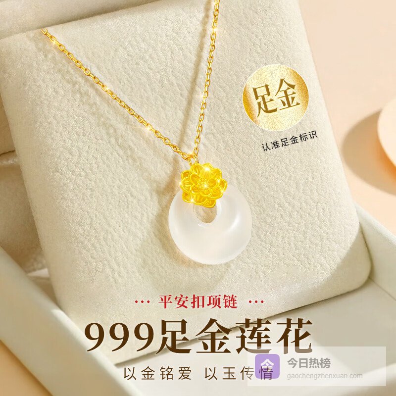 【京东自营】礼意久久玉石黄金平安扣项链女款生日礼物女生38女神节礼物妇女节老婆妈妈¥