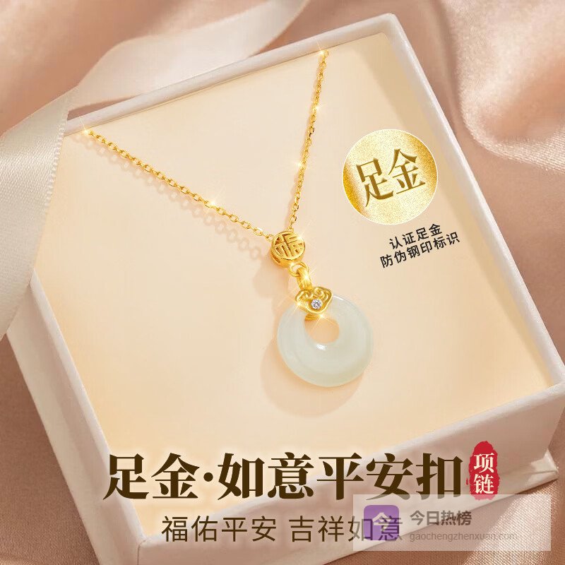 【京东自营】礼意久久玉石黄金平安扣项链女款生日礼物女生情人节礼物女朋友送老婆妈妈¥