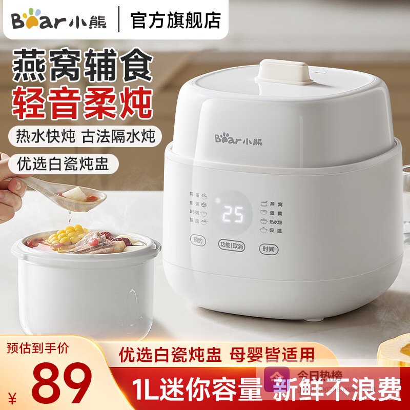 小熊(Bear) 电炖锅隔水炖锅家用煲汤锅燕窝炖盅1L炖汤锅多功能锅BB煲粥饭锅婴儿辅食锅煮粥锅 无蒸笼 1L DDZ-E10N1¥