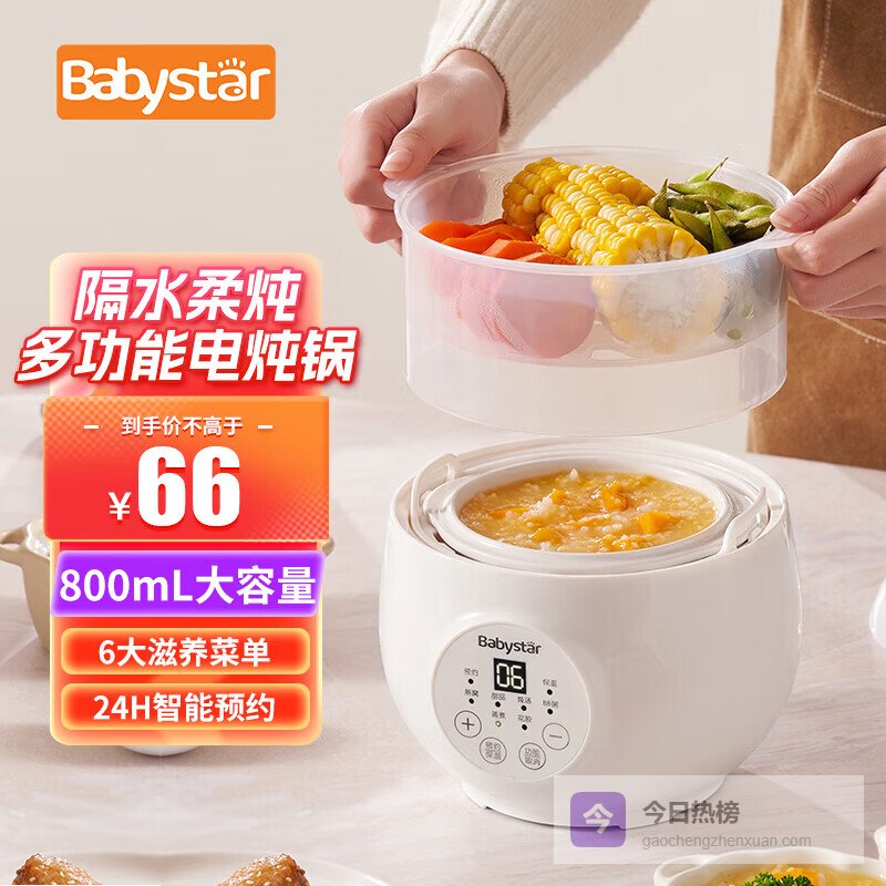 推荐理由:这款BabyStar 800ML电炖锅,支持慢炖和快炖两种模式,满足宝宝不同阶段的饮食需求,真是挺方便的。采用隔水柔炖方式,让食材的营养和原汁原味都能很好地保存,炖出来的食物更健康、更美味。