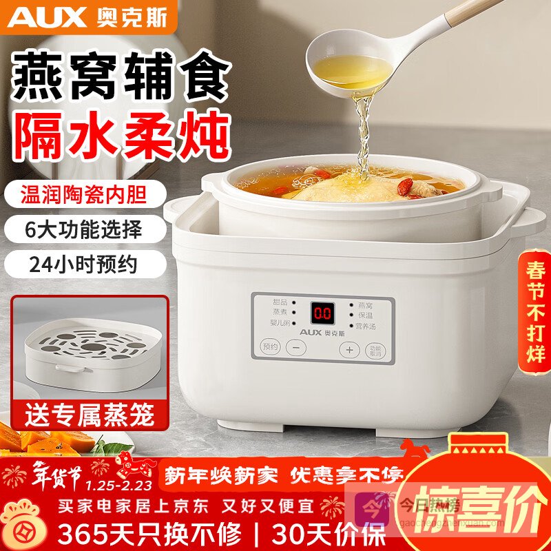 奥克斯(AUX)电炖锅隔水炖盅婴儿辅食锅煲汤陶瓷内胆炖燕窝甜品全自动家用小型1-2-3人小炖锅蒸锅煮粥锅慢炖锅 2L 【一盅一胆 送蒸笼】¥