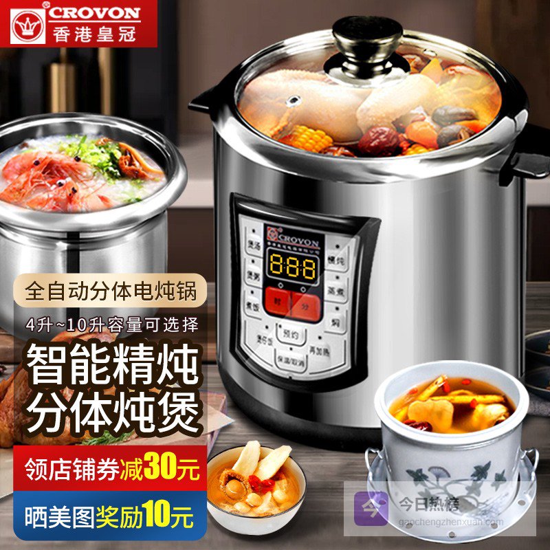 CROVON食品级不锈钢皇冠电炖锅隔水炖盅全自动智能煲汤煮粥锅多功能家用汤锅炖汤柠檬膏电锅 TM款(8L钢胆/不带炖盅)适合7-8人 8L¥