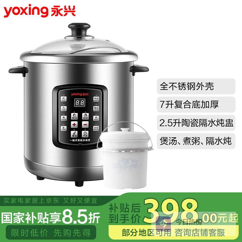 推荐理由:这款永兴DYG-50AFW电炖锅,9.9小时智能预约,你可以提前设好时间,早上起来就能喝上新鲜热腾腾的汤,特别适合忙碌的生活节奏。配备微电脑智能控制面板,操作起来非常简单明了,不管是老人还是小孩都能轻松上手。