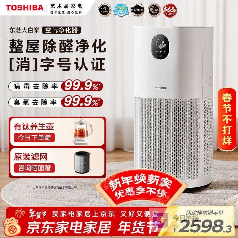 【京东自营】东芝大白梨空气净化器除甲醛pm2.5过敏源等离子消杀母婴家用病毒细菌医护级卫健委备案家用¥