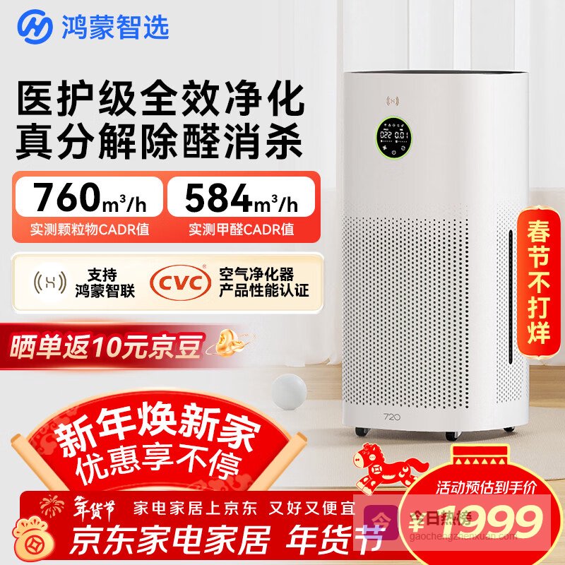 【京东自营】华为智选鸿蒙智选720智能空气净化器3i除甲醛去除烟味杀菌除雾霾花粉过敏原宠物卧室小户型¥