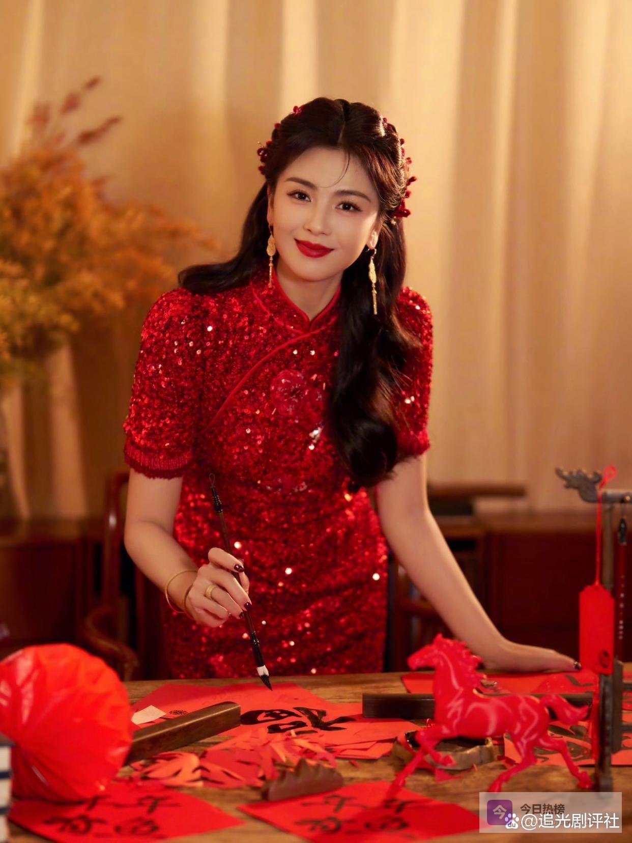 其二,新春茶话会互动环节。写真中“新春茶话会”的标签与场景设定,让不少网友推测,刘涛可能会参与春晚的“新春茶话会”互动环节,与其他艺人、观众围坐畅谈,分享新春习俗,传递阖家团圆的祝福,这套旗袍恰好契合茶话会的中式温馨氛围。
