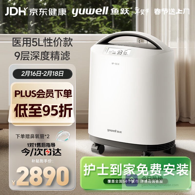 4️⃣ 鱼跃(Yuwell)制氧机S-5AW医用级5L升吸氧气机家用老人孕妇超轻音直流变频省电