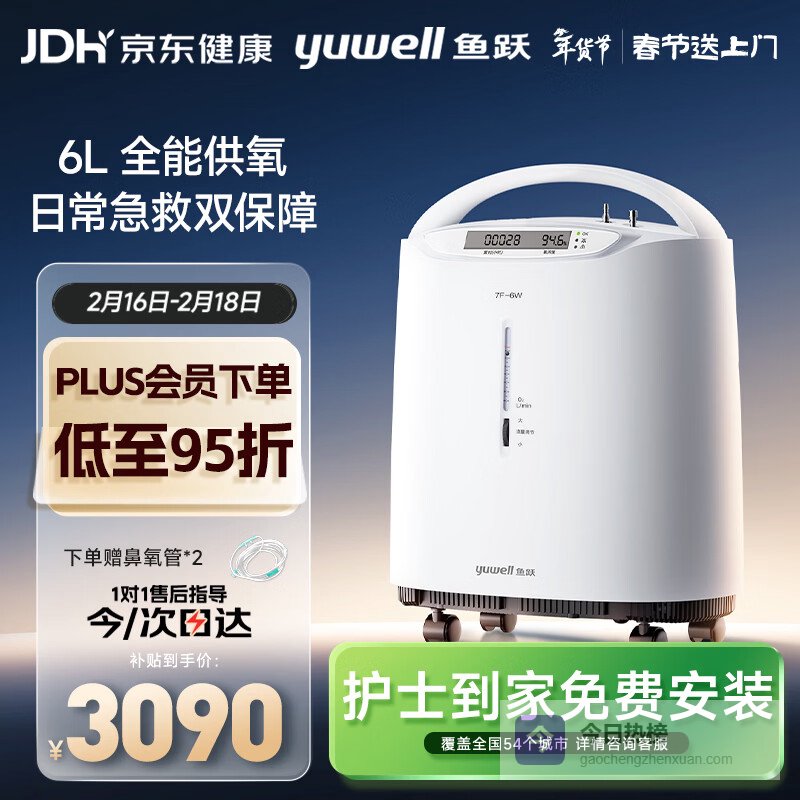 5️⃣ 鱼跃(Yuwell)制氧机医用吸氧机家用老人5L升级氧气机6L7F-6W中重度缺氧