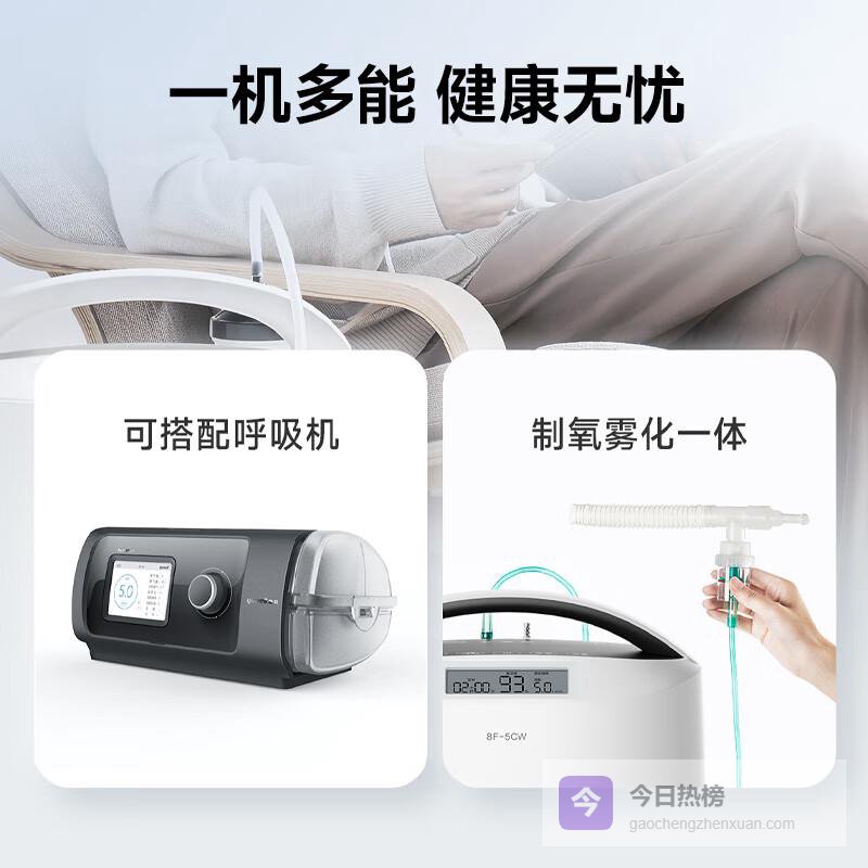 这款机型主打医疗级精准供氧,氧浓度稳定在93%±3%,符合国家二类医疗器械标准。独特的一体式雾化功能,可直接连接呼吸面罩或雾化药杯,实现氧疗与药物治疗同步进行。