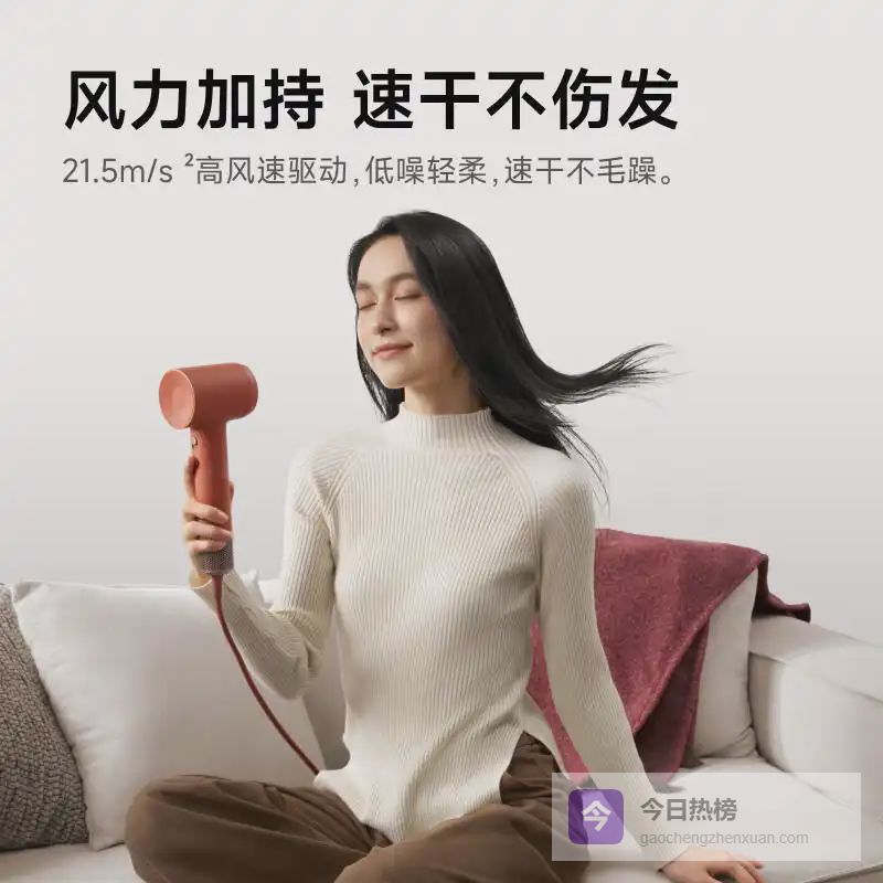 强劲无刷电机:米家高速吹风机搭载强劲无刷电机,转速高达110,000转每分钟,风速可达65m/s。即使是短发,也能在短短一分钟内完成干发,极大缩短早晨的准备时间,让你更轻松地迎接一天的挑战。