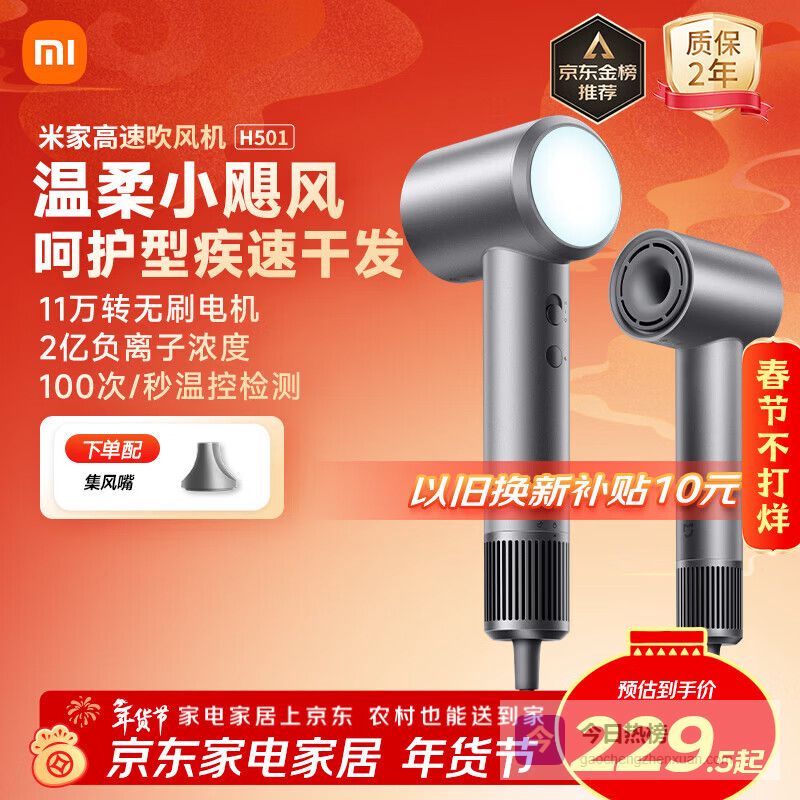【京东自营】米家高速吹风机H501家用小米吹风机智能温控速干恒温负离子吹风筒静音护发送女友生日新年礼¥