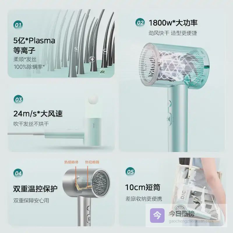 强劲大功率:搭载1800W的大功率马达,风速可达24m/s,快速干发效果令人惊艳。在您忙碌的早晨,快速吹干头发不再是难题,节省时间,让每一天都充满自信与活力。