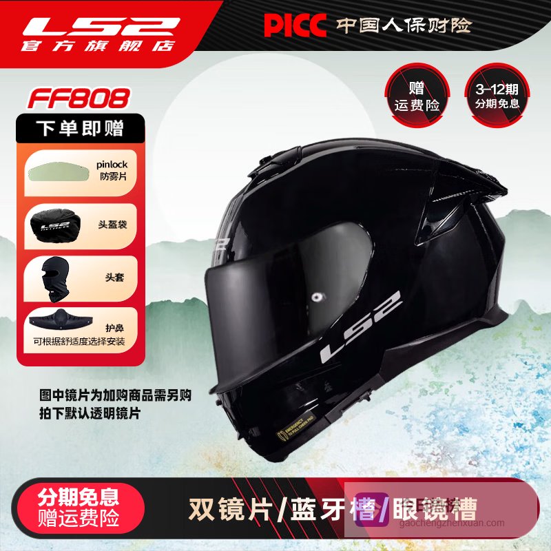 LS2摩托车头盔男女机车双镜片全盔赛车四季通用FF808 黑色 3XL(建议61-62头围)¥
