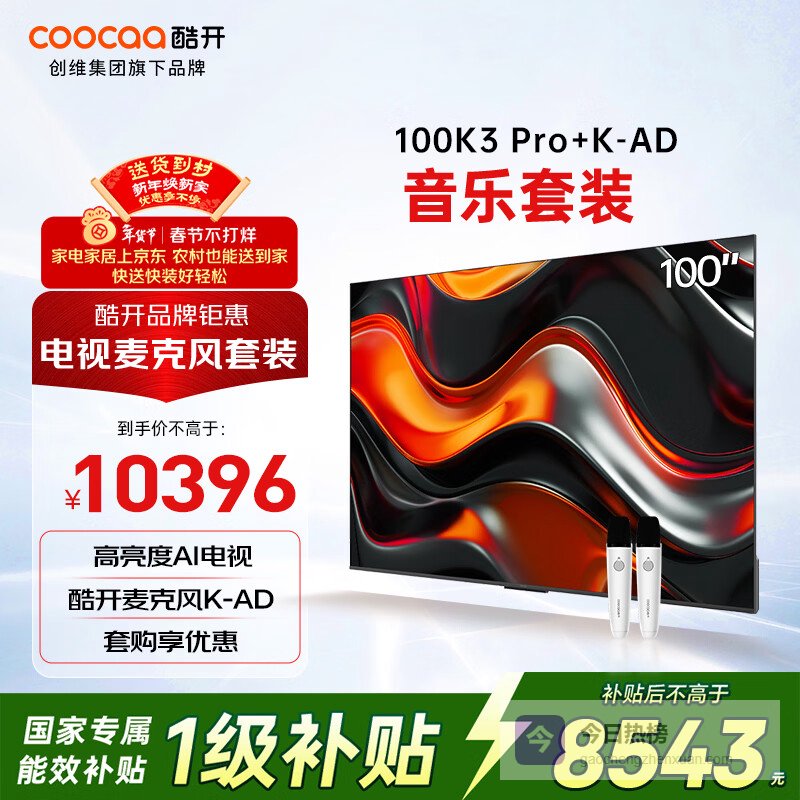 酷开创维100K3 Pro 2025款 100英寸电视+K-AD麦克风套装 K歌电视 家庭KTV无线话筒唱歌会议 双支麦克风¥