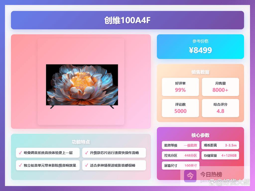 总的来说,创维100英寸电视的选择确实需要根据个人预算和需求进行综合考虑。希望这份推荐能帮你理清思路,找到最适合自己的那一款,在家也能拥有影院级的视听盛宴!