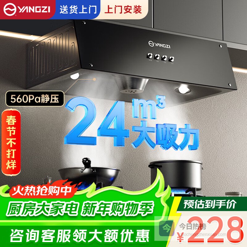 购买家用小尺寸抽油烟机,首先要关注吸力,别以为小尺寸就没劲儿。现在很多小户型油烟机技术已经很成熟了,吸力完全可以满足日常需求。像康宝、好太太亿美、扬子这些品牌,都有大吸力的型号,能达到25m³/min以上,甚至更高,爆炒时也能Hold住。当然,静压也很重要,尤其住在高层的朋友,一定要选静压值高的,比如500Pa以上,这样才能保证油烟排出去,不倒灌。另外,别忘了看看油烟机的电机,变频电机通常更静音,也更节能哦,还有一些品牌有智能巡航增压功能,可以自动调节风压,这些都可以多关注下。
