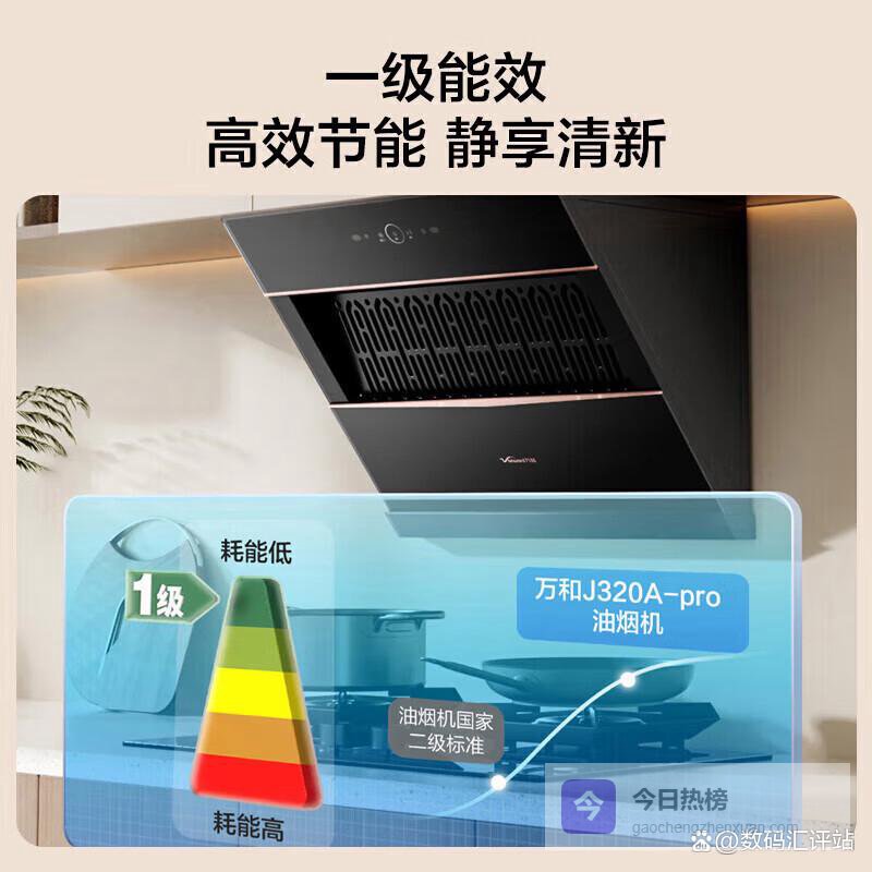 六、万和万和J320APRO油烟机配备了强劲的21m³/min大风量,试了下在大厨烹饪时,油烟几乎都被瞬间吸走,厨房空气变得清新不少。它的高静压达500Pa,能快速排出油烟,即使是在高层住户,油烟倒灌的情况也少见,油烟不再倒灌回厨房。