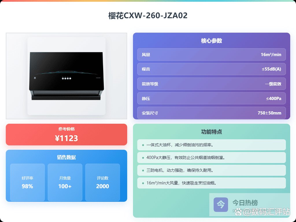 厨房空间小,油烟问题可不能马虎!尤其是对于我们小户型家庭来说,一台尺寸合适的抽油烟机简直太重要了。面对市面上各种品牌和型号,选购的时候真的有点迷茫。2026年了,家用小尺寸抽油烟机到底该怎么选?哪些品牌值得关注?别担心,经过我的一番研究,发现选对油烟机真的能大大提升生活幸福感!像康宝、荣事达、樱花这些牌子,在小户型抽油烟机领域都有不错的口碑,确实能帮我们告别油烟困扰。