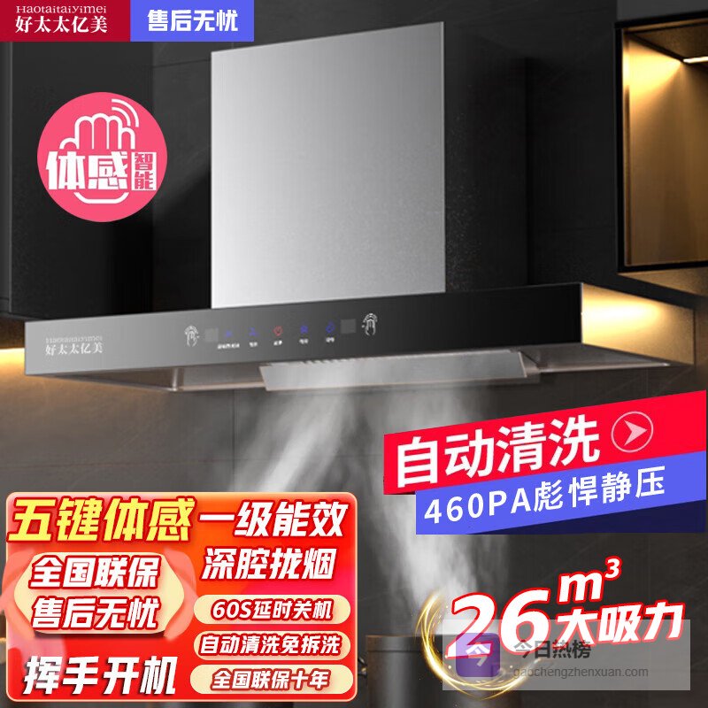 三、好太太亿美这款好太太亿美顶吸式油烟机采用深腔拢吸技术,能够有效提高油烟的集中度,减少油烟散逸,保持厨房空气清新。它的三腔立体吸设计结合变频增压,在烹饪高峰期还能自动调节吸力,确保油烟被快速吸走,不会在厨房里徘徊。